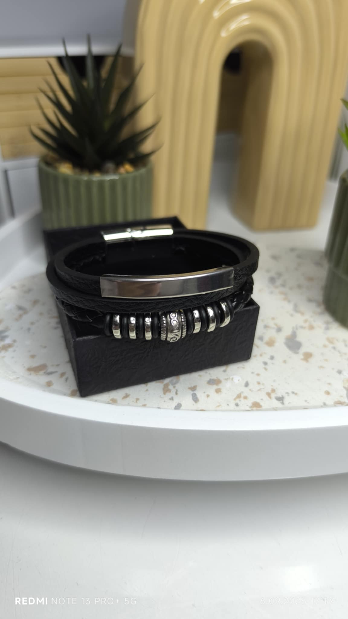 Bransoletka męska Urban Classic. Z elementami ze stali nierdzewnej 316L Ta elegancka i nowoczesna bransoletka to doskonałe połączenie klasyki z nutą męskiego charakteru. Wykonana z wysokiej jakości, miękkiej skóry naturalnej, zachwyca wygodą noszenia i trwałością. Jej ponadczasowa czerń idealnie kontrastuje z elementami ze stali nierdzewnej 316L, które dodają całości stylowego, lekko industrialnego wyrazu.